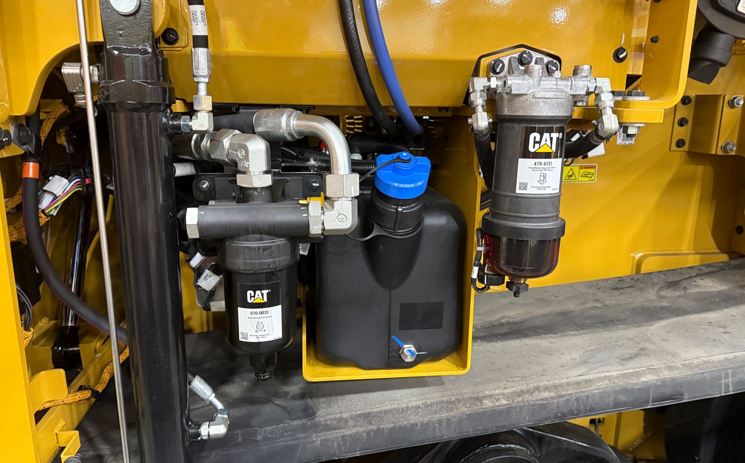 Dunque, sui modelli aggiornati delle finitrici di Caterpillar AP1000 e AP1055 i progettisti hanno spostato il filtro dell’olio motore e lo scarico nel vano laterale sinistro, vicino al serbatoio del DEF. L’obiettivo è quello di semplificare la manutenzione. I modelli precedenti, infatti, richiedevano l’accesso a questi componenti tramite sportelli a battente situati sul retro della tramoggia. Il nuovo filtro, accessibile più facilmente, riduce le difficoltà legate all’inserimento degli inserti nella tramoggia e all’accumulo di materiale attorno agli sportelli di accesso.