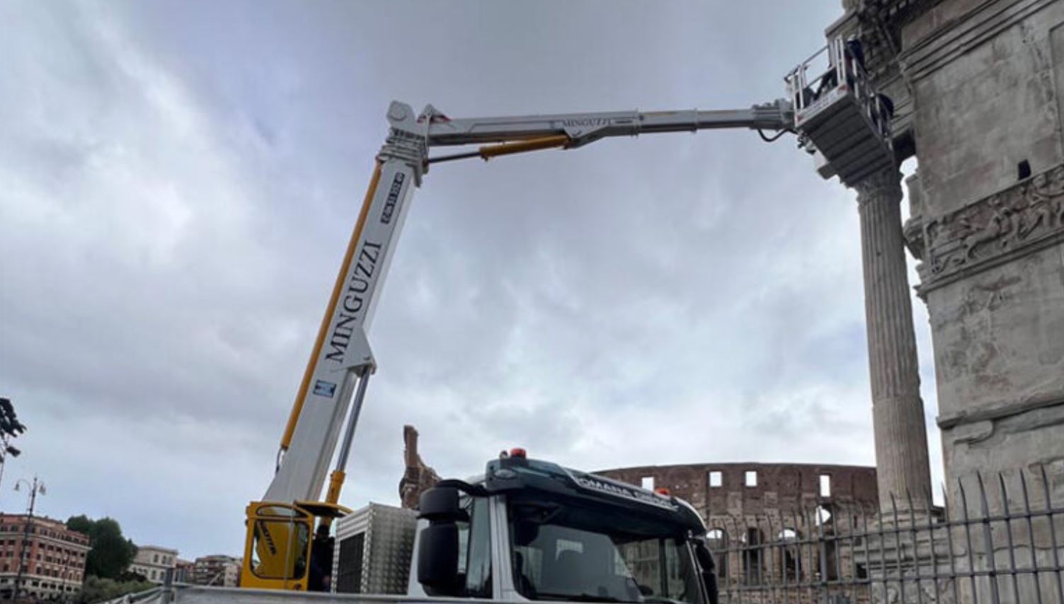Le operazioni sull’Arco, posto nel cuore del Parco Archeologico del Colosseo, l’area di interesse storico compresa tra il Circo Massimo e l’Arco di Tito, si sono infatti concluse di recente. E hanno visto come protagonista una piattaforma autocarrata telescopica Multitel MJ 375, operata dall’azienda Minguzzi Srl. Al centro delle operazioni – autorizzate e supervisionate dal Ministero della Cultura – il più grande arco onorario giunto fino a noi, che celebra il trionfo di Costantino su Massenzio, avvenuto il 28 ottobre 312 d.C. a seguito della battaglia di Ponte Milvio.