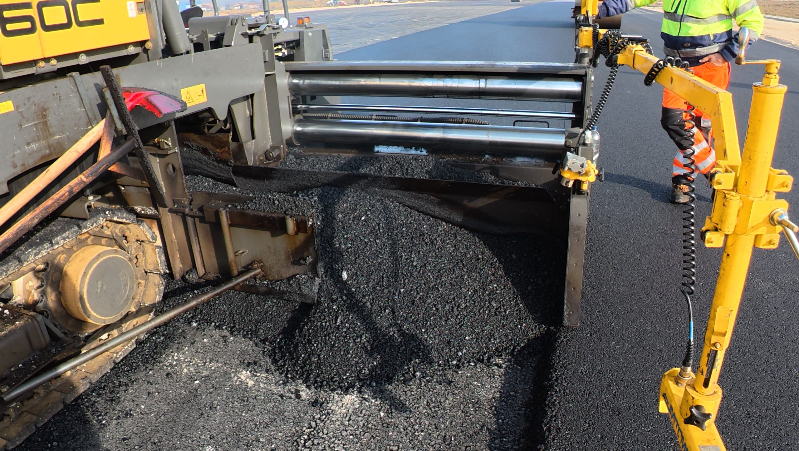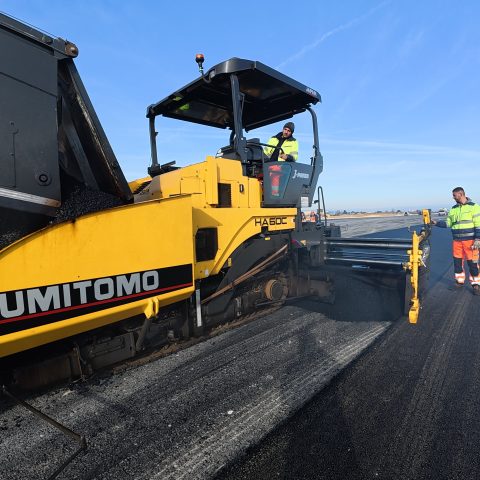 La Appalti Engineering sta utilizzando una finitrice Sumitomo HA60C-11 per la realizzazione dell'ampliamento della pista dell'Aeroporto d'Abruzzo a Pescara. Una macchina ideale per grandi e piccoli spessori che non teme le produzioni elevate.